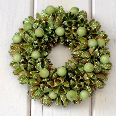 14cm※【Xmasリース】【クリスマスリース】【2009クリスマスリース】【ドライフラワー】キラキラリース(グリーン ミニミニ)